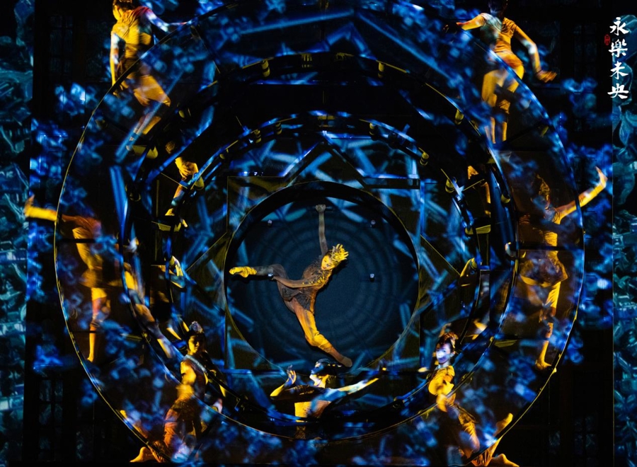舞剧《永乐未央》以永乐宫迁建史诗为叙事干线,索取出“古建、壁画、琉璃、传承”四重好意思学维度,分为四个篇章:“筑广厦”“绘至境”“真金不怕火釉心”“承光阴”。在“时空同频”的私有舞台语汇中,不雅众将目击超越700年的古今对话:元代督建者与现代建筑师心神交织,见证“立不雅度东说念主,时弗成失”的建宫弘愿;被拒之门外的元代女画工以生存为笔、念念象为卷,将生命祈愿绘入《朝元图》的玉女仙班,与1957年前驾摹仿确现代好意思术师素志共识;执着身手的琉璃匠师与七百余岁的“蓝釉角神”相伴相守,共同还原失传已久的孔雀蓝釉制法,继续看护文脉的誓词。