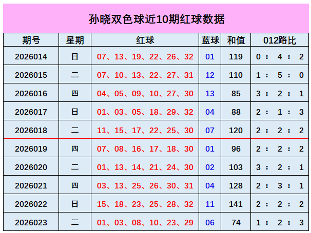 快乐彩app下载 024期孙晓双色球预测奖号:和值走势保举