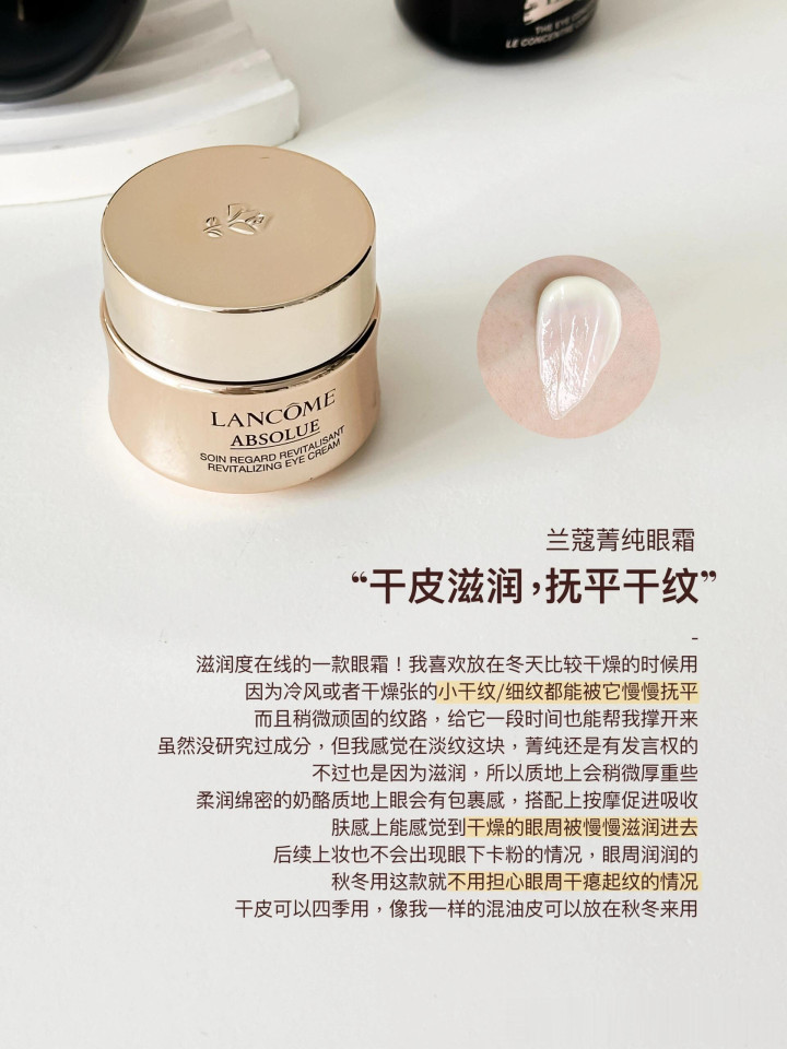这款眼霜是我前段时间入秋时购入的,举座用下我合计在强韧修护这块真的顶,可以说是谁用谁都会被惊艳的那种水平,相配贵妇的绷带质料,上眼纯粹按压就全渗入给与,同期就像是胜仗买通的补水通谈,缺水干燥的眼周肌肤立马津润了几个度。