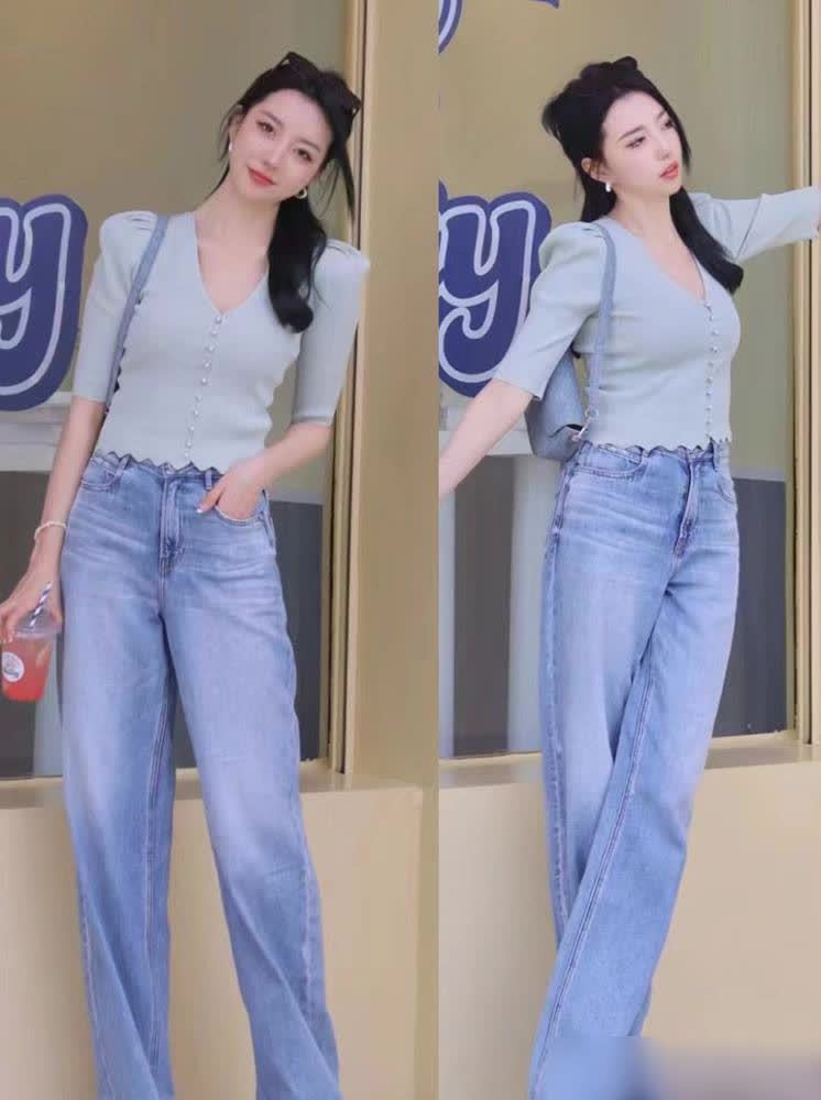 记着,彩色要选低饱和度的!浅粉、太空蓝、米白、淡紫这些“降温色”,自带慈悲滤镜。若是怕单调,试试“二八法令”:80%基础色打底,20%彩色点睛——比如白衬衫配浅蓝伞裙,有时米白阔腿裤搭淡紫针织衫,澄莹又不寡淡。