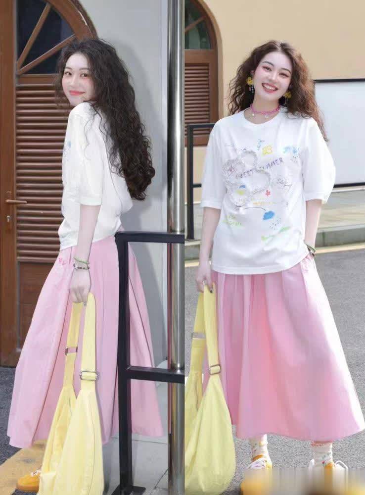 要说夏天最冷静的单品,伞裙必须有姓名。我有个微胖的一又友,昔日总怕穿裙子显胯宽,直到试了条过膝伞裙——上窄下宽的版型,刚好遮住大腿肉,裙长过膝又藏住了小腿的不无缺。她配了件短款白T恤,把衣角塞进去,腰线坐窝拔高,158的个子看起来像165。