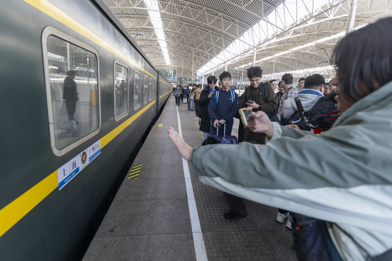 1月14日,火车迷在上海火车站送别Z100次列车。\n 新华社记者 王翔 摄