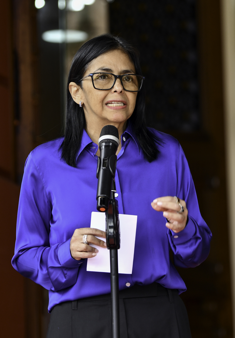 1月14日,委内瑞拉都门加拉加斯的总统府不雅花宫,委内瑞拉代总统德尔西·罗德里格斯插足新闻发布会。\n 新华社记者 丁洪法 摄