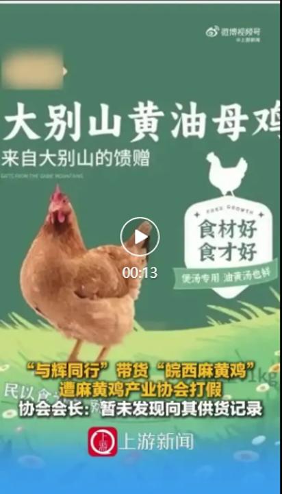 近日,某电商平台上“与辉同业”直播间带货的一款“某某轩83.3元三只大别山黄油母鸡”激刊行业质疑。