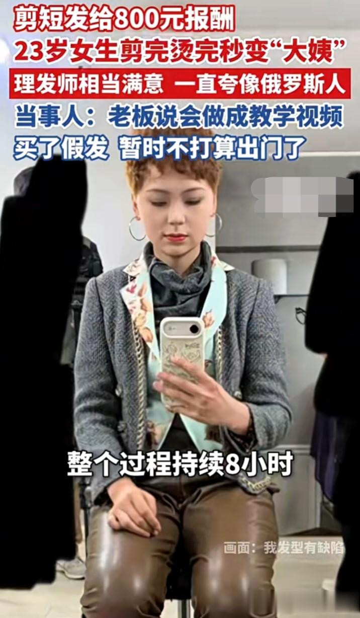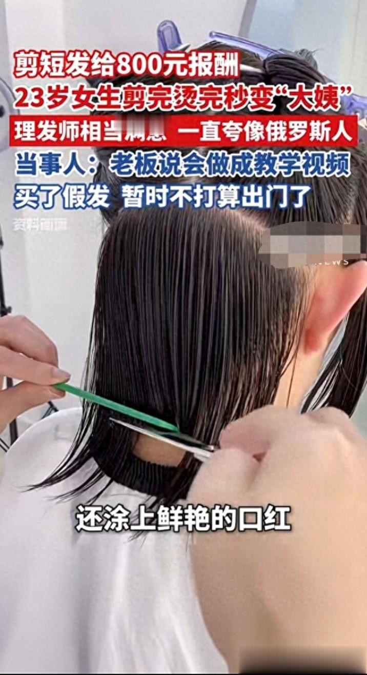 当今网上什么兼职王人有,可上海一位23岁女生易女士,奈何也没思到,我方仅仅思剪头发赚800块钱,成果烫完染完,径直从年青姑娘姐,酿成了外出被喊“阿姨”的造型,就地心态崩了。