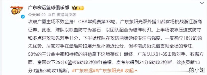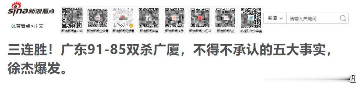新浪网——三连胜!广东91-85双杀广厦,不得不承认的五大事实,徐杰爆发