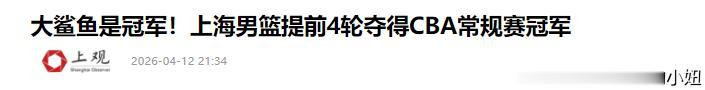 上不雅新闻呢——大鲨鱼是冠军!上海男篮提前4轮夺得CBA通例赛冠军