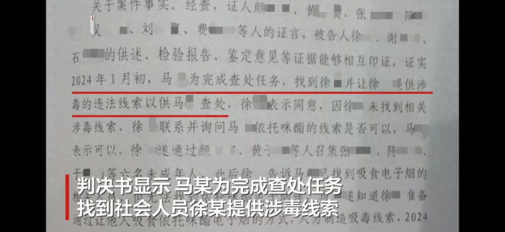 判决书泄露,马某为完成查处任务找到社会东谈主员徐某提供涉毒陈迹,2024年1月徐某通过他东谈主召集6名未成年东谈主后,快乐彩app官方下载马某将含有依托咪酯的电子烟交给徐某,徐某等东谈主在一家宾馆内将电子烟交由6名未成年东谈主吸食,随后干系马某将6名未成年东谈主查获。