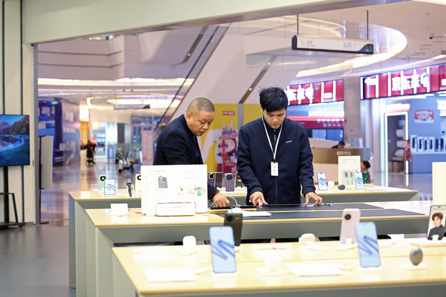 梅陇一家华为专卖店,主顾在体验折叠手机。