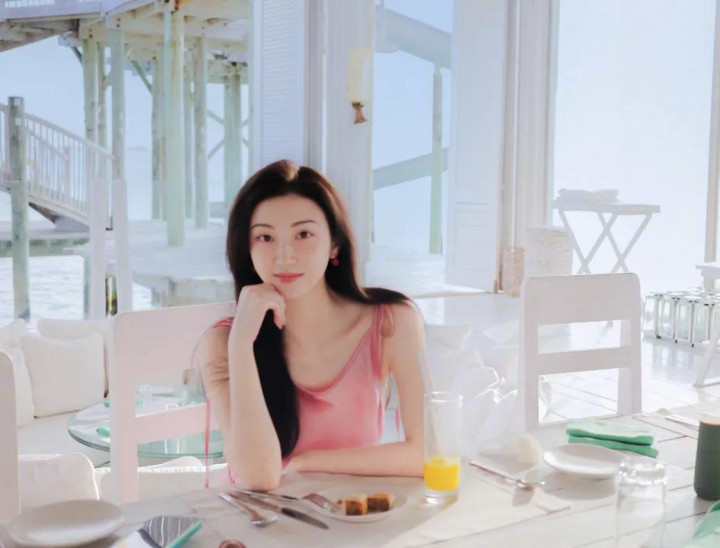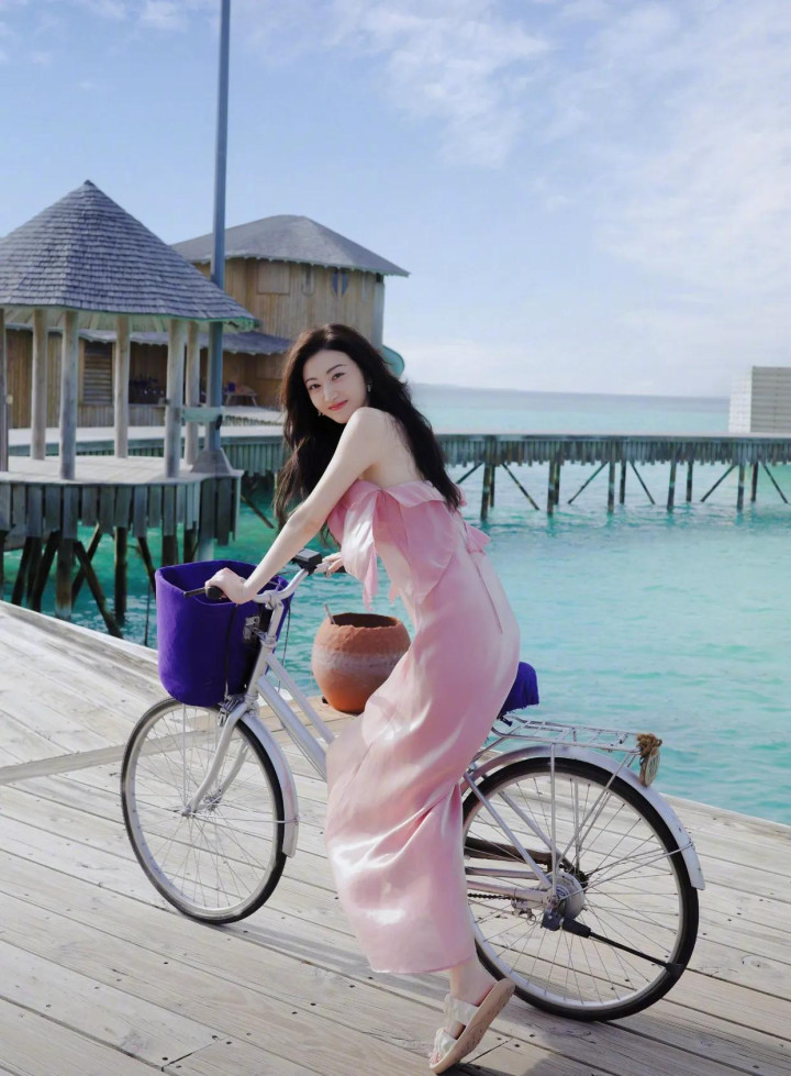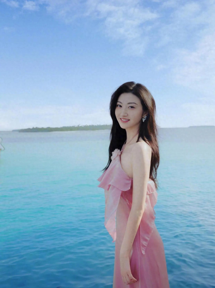 快乐彩app “东说念主间高贵花”景甜晒好意思照, 粉裙在身太好意思了, 粉黛为裳, 波光为镜