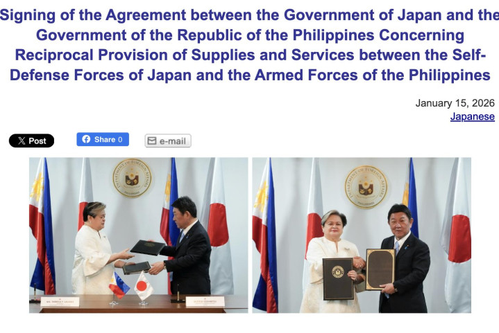 2026年1月15日,日菲签署《物质劳务相互提供协定》(着手:日本外务省官网)