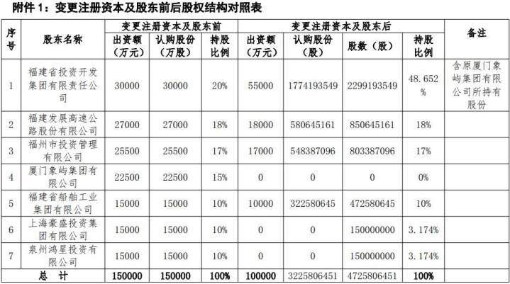 天然投了反对票,但由于代表股份只消20%,并不影响增资有蓄意的通过。最终通过的议案中,四家福建省国资企业参与增资,其中福建投资集团出资5.5亿元,抓股比例由20%跃升至48.652%,接近全齐控股比例,其他三家国资企业离别出资1.8亿元、1.7亿元、1亿元。
