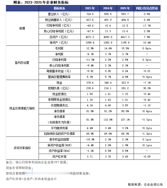 2025年末金茂执有现款边界323.9亿元,较岁首减少7.1%;现款短债比1.15,非受截止现款短债比为1.01。