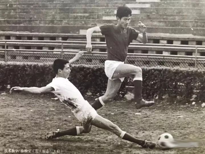 这是当年国足施行中徐根宝铲断容志行的技巧教悔动作。