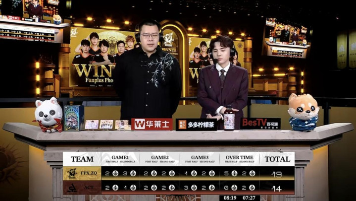 最终,FPX.ZQ以2胜1平1负(19:14)的比分打败ACT,取得本场比赛的得手。
