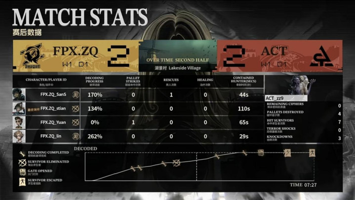 加时赛上半轮:ACT求生者对阵FPX.ZQ监管者
