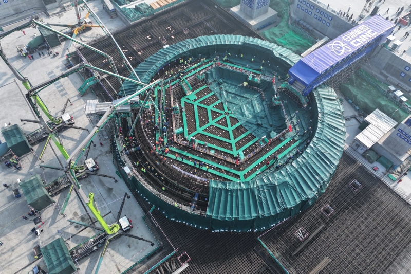 1月16日,位于江苏省连云港市的江苏徐圩核能供热发电厂1号机组核岛运转混凝土浇筑,技俩参加主体工程勾引阶段。这是“十五五”开局之年我国开工勾引的首台核电机组。新华社记者 毛俊 摄