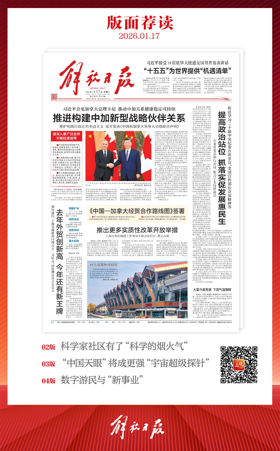 早上好!上不雅新闻『早读』来啦!2026年1月17日 星期六 农历十一月廿九上海多云,黎明局部地区有雾,9~15℃