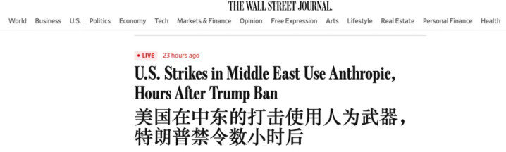 华尔街日报:Pentagon Used Anthropic’s Claude in Maduro Venezuela Raid、U.S. Strikes in Middle East Use Anthropic, Hours After Trump Ban
