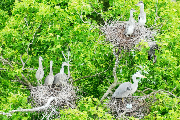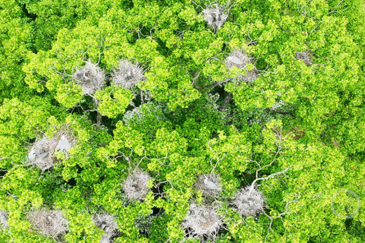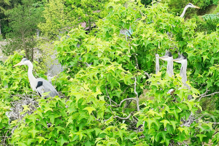 4月26日,重庆市酉阳土眷属苗族自治县官清乡境内的金家坝水库,春日里的碧水青山间,快乐彩app官方下载迎来了一群罕见的“住户”。四肢苍鹭的环节栖息与觅食地,这里澄莹的湖水、广博的山林与葱郁的湿地,共同组成了一幅春意盎然的生态画卷。