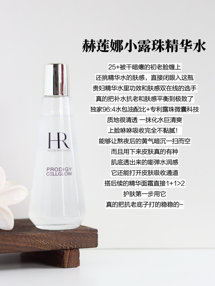 25+被干暗瘪的初老脸缠上,还挑精华水的肤感,径直闭眼入这瓶,贵妇精华水里功效和肤感双在线的选手,真的把补水、抗老和肤感均衡到极致了,独家96:4水包油配比+专利露水微囊科技。