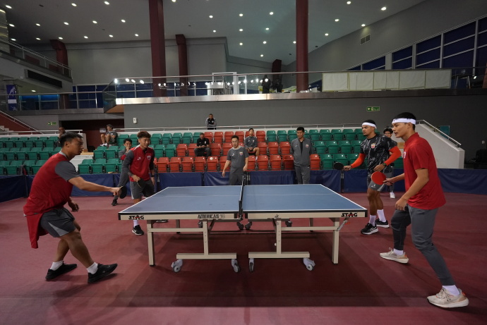 海港队通过乒乓球换取赛让队员得到养息疲塌。