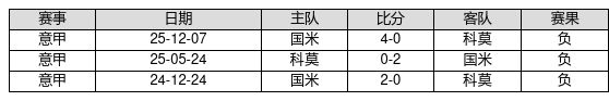 科莫 VS 国米两队近10年的交战次数为3场,快乐彩app官方下载科莫0胜0平3负,赢球概率为0.0%,平局概率为0.0%,输球概率为100.0%。