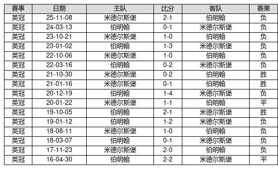 伯明翰 VS 米德尔斯堡两队近10年的交战次数为16场,伯明翰3胜2平11负,赢球概率为18.8%,平局概率为12.5%,输球概率为68.8%。