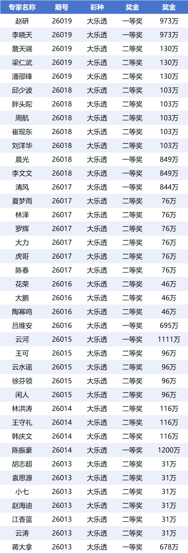 陈振豪:大乐透26014期开奖中,陈振豪喜中一等奖,收货1200万元大奖!此前他曾4次射中大乐透二等,累擒奖金1638万,期待再中大奖![查抄群众推选]